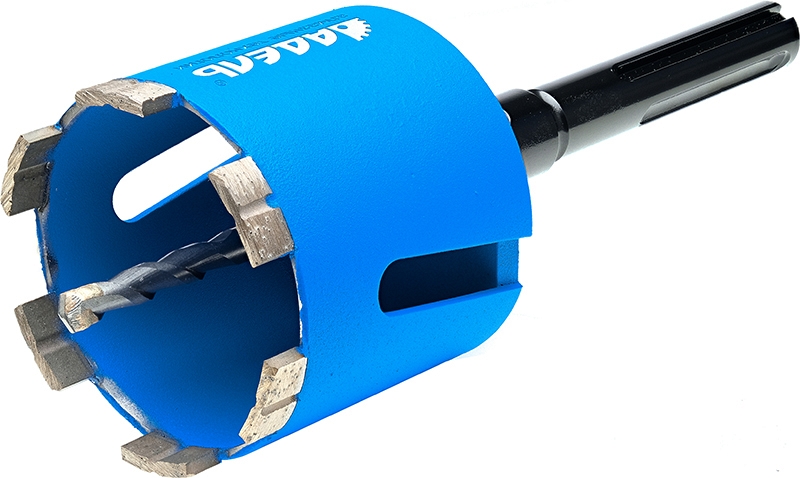 Алмазная коронка для подрозетников по железобетону Адель Super Fast SF-D70 SDS-Max 68/65 мм (Adel Супер Фаст СФ-Д70 СДС-Макс 68/65 мм) с адаптером М16 – SDS-Max, центровочным твердосплавным сверлом и клином предназначена для скоростного сверления железобетона (армированного бетона), бетонных блоков, газобетона, кирпича и других строительных материалов с использованием ручного электроинструмента без охлаждения водой.