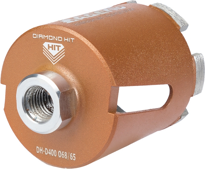 | Характеристики / Алмазная коронка для подрозетников | Стандартная (Адель, Hilti, Dr. Schulze, Cedima, Keos, Diam, Messer, Ниборит, Зубр, Практика и т.д.) | Адель Diamond Hit DH-D400 68/65 мм |