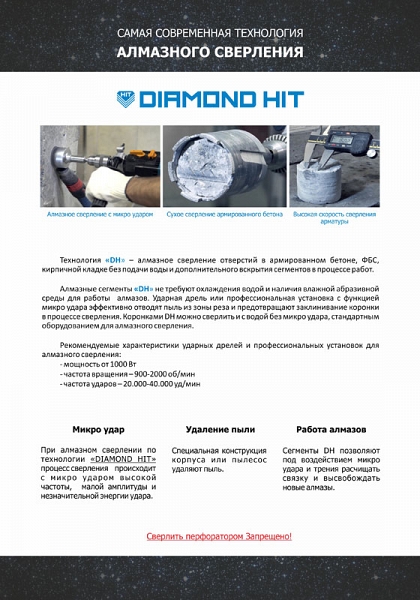 - Новая технология алмазного сверления без подачи воды Diamond Hit: