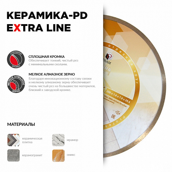 - Специально разработан для чистовой резки плитки: содержит мелкое алмазное зерно