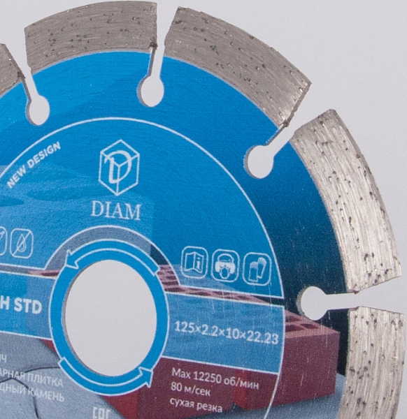 Алмазный отрезной круг Diam STD 1A1RSS Бетон 125 мм (Диам СТД 1А1РСС Бетон 125 мм) – сегментный алмазный диск для сухой резки бетона, кирпича, тротуарной плитки, природного камня, без водяного охлаждения.