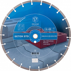 Цена и технические характеристики алмазного отрезного круга Diam STD 1A1RSS Бетон 350 мм: