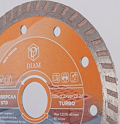 Цена и технические характеристики алмазного отрезного круга Diam STD Turbo Универсал 125 мм: