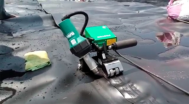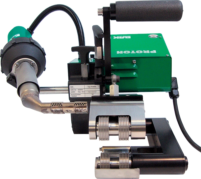 Автоматический сварочный аппарат горячего воздуха и клина Bak ProtOn Air (Бак ПротОн Эйр) – обновленный универсальный сварочный автомат для сварки термопластичных гидроизоляционных покрытий и мембран из таких материалов, как: ПНД (ПЭНД), ПВД (ПЭВД), ТПО, ПВХ, ПП, ПЭ-Х (PE-LD, PE-HD, PVC-P, PP, ECB, EVA, TPO) и других при устройстве полигонов ТБО, изготовлении гидроизоляции при строительстве туннелей, фундаментов зданий, лагун, искусственных прудов и водоемов, бассейнов и т.д.