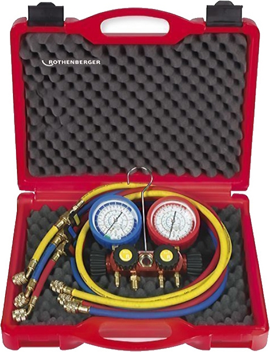 - Четырехпозиционный аналоговый манометрический коллектор для хладагентов R410A, R32 Rothenberger 5/16 SAE