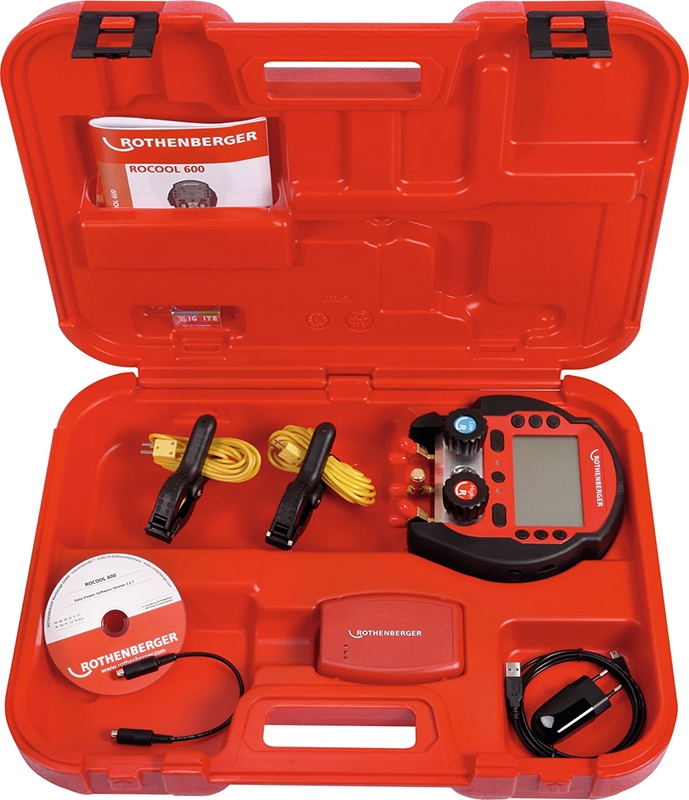 Электронный цифровой манометрический коллектор Rothenberger Rocool 600, 2 температурные клеммы, Red Box, Data Viewer, чемодан