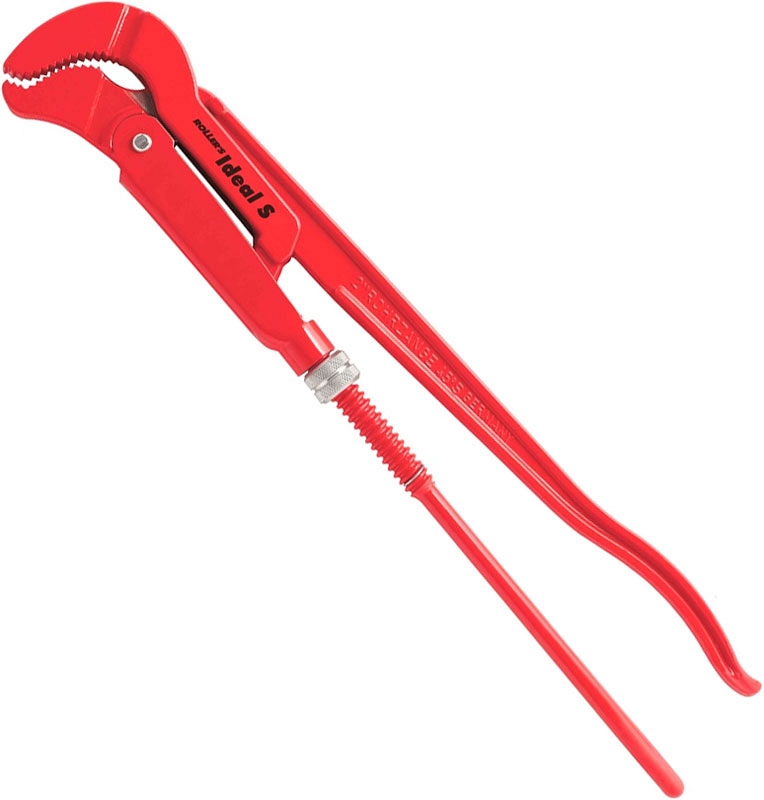 Газовый ключ с S-образными губками 45° Roller Ideal S 2" (Роллер Идеал С 2") – надежный профессиональный сантехнический разводной трубный шведский (шведик) ключ для фиксации труб Ø до 50 мм (2"), захвата гаек, болтов, плоских заготовок.