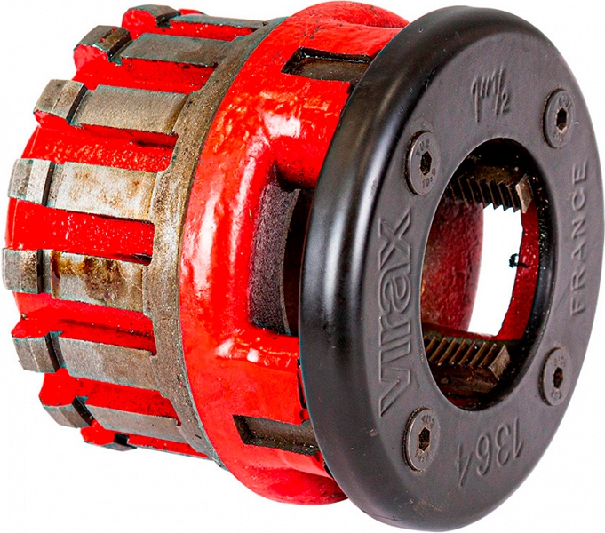 Клупп ручной для нарезки резьбы Virax 1 1/2"-2" BSPT Правая (Виракс 1 1/2"-2" БСПТ Правая) – профессиональный высокопроизводительный ручной резьбонарезной набор клуппов для нарезки правой конической трубной резьбы BSPT на стальных трубах Ø 1 1/2", 2".