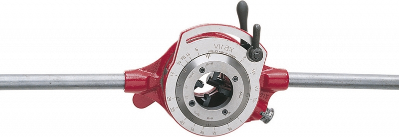 Клупп ручной настраиваемый для нарезки резьбы Virax 1"-1 1/4", 1 1/2"-2", 2 1/2"-3" BSPT Правая и Левая (Виракс 1 1/2"-2", 2 1/2"-3" БСПТ Правая и Левая) предназначен для высокопроизводительной нарезки правой и левой конической резьбы на стальных трубах Ø 1" – 1 1/4", 1 1/2" – 2", 2 1/2" – 3" (26/34 – 33/42, 40/49 – 50/60, 66/76 – 80/90 мм).