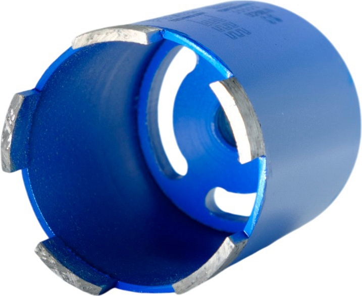 - Алмазные сегменты, приваренные к корпусу лазером, позволяют осуществлять бурение без подачи воды