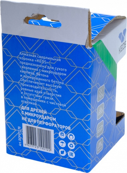 Коронка алмазная по бетону для подрозетников под микроудар Keos Pulsar M16 72/70 мм (Кеос Пульсар М16 72/70 мм) предназначена для сухого бурения слабоармированного бетона, кирпича, натурального и искусственного камня с применением дрелей в режиме микроудара. Идеально подходит для работы в помещениях с чистовой отделкой для высверливания отверстий под розетки, без труда проходит стены и перекрытия для проводки коммуникаций без лишней пыли и грязи.