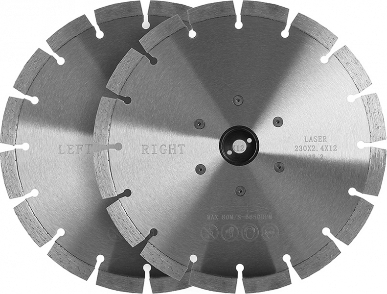 Левый алмазный диск Messer Cut-n-Break Left 230 мм (Мессер Кат-н-Брик Лефт 230 мм) предназначен для установки на бензорез Husqvarna K 760 Cut-n-Break и электрические резчики Husqvarna K 4000 Cut-n-Break, K 3000 Cut-n-Break, для сухой резки высокоармированного бетона (железобетона) без подачи воды.