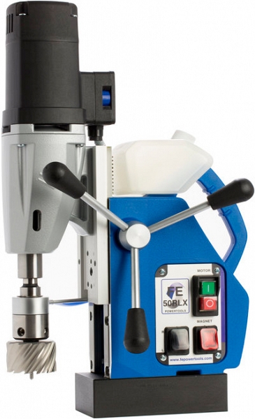 Магнитный сверлильно-резьбонарезной станок FE 50 R/L X (ФИ 50 Р/Л Х) на магнитном основании предназначен для сверления сквозных отверстий Ø 12 – 50 мм корончатыми сверлами, Ø до 23 мм спиральными сверлами, нарезания резьбы М5 – М16, шлифования до Ø 23 мм, зенкерования до Ø 40 мм.