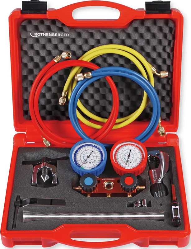 Набор инструментов для кондиционеров Rothenberger Klima I, 1/4 SAE (Ротенбергер Клима 1, 1/4 САЕ) – профессиональный практичный набор со всеми необходимыми инструментами для монтажа и обслуживания кондиционеров и тепловых насосов.