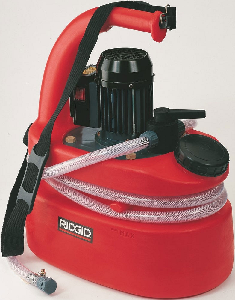 Насос для промывки теплообменников Ridgid DP-13 (Риджид ДП-13) – электрический промывочный насос для удаления накипи, снятия накипей, быстрого удаления сильных кальциевых отложений и накипи (промывки) в системах отопления и охлаждения, водопроводах, теплообменниках, проточных нагревателях, радиаторах, водонакопителях и т.д.