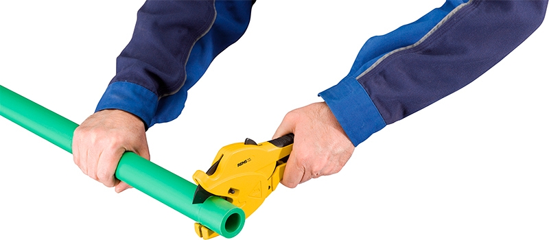 - Отрез ровно под прямым углом и без грата, благодаря точному упору трубы и клиновидному лезвию