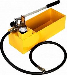 - Одна технологическая операция позволяет заполнить и проверить давление в системе. Однако, заполнять систему отопления ручным насосом для опрессовки не всегда целесообразно, так как его производительность ограничена резервуаром и работоспособностью обслуживающего оператора. При постоянной необходимости в использовании имеет смысл обратить внимание на модели опрессовщиков, имеющие электрический привод