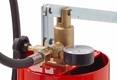 Опрессовщик ручной вертикальный MGF 60 бар (МГФ 60 бар) – ручной испытательный опрессовочный насос с вертикальным резервуаром и манометром для опрессовки и проверки герметичности контуров и сосудов под давлением, испытаний на утечку в водопроводах и резервуарах с давлением до 60 бар.
