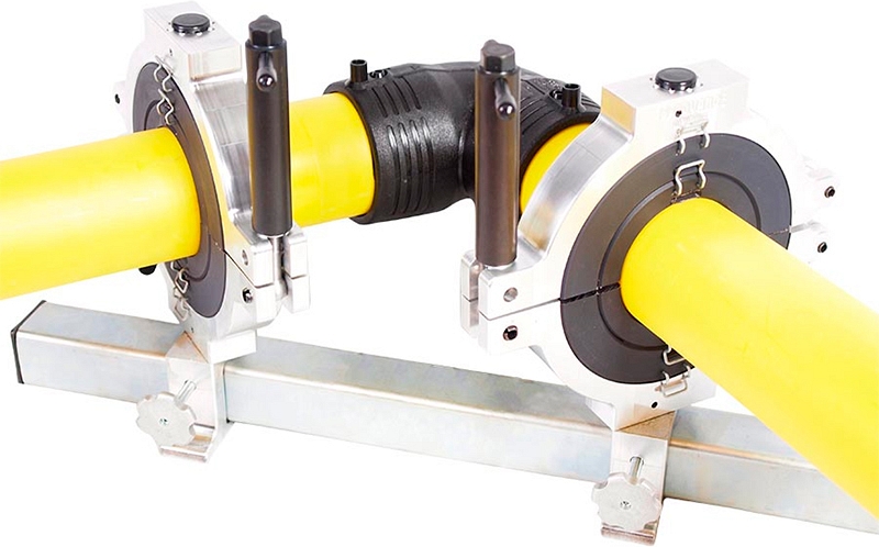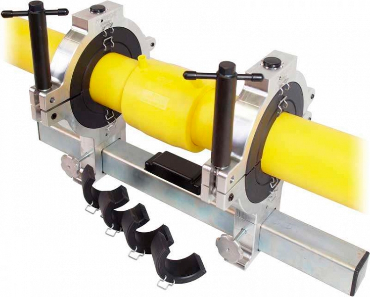 - Конструкция: прямая штанга с 2-мя поворотными хомутами, для сварки 2-х труб, расположенных соосно или под углом друг к другу, фитингом, имеющим 2 раструба, с закладным нагревателем
