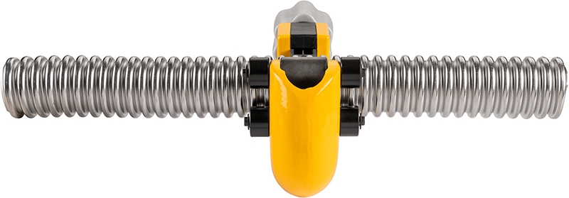 - С обеих сторон по 3-м направляющих ролика из высокомолекулярного пластика, расположенных в форме треугольника, для прямого ведения гофрированного металлического шланга (гофрированной трубы) в процессе резки
