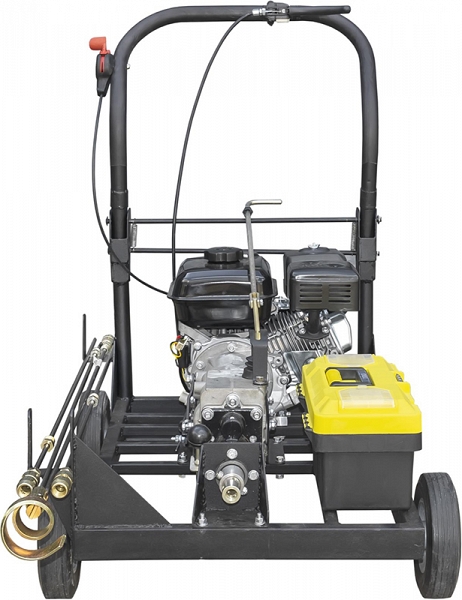 - Бензиновый двигатель 6,5 л.с. приводит в действие пробивные штанги с быстросъемными замками максимальной длиной до 150 м