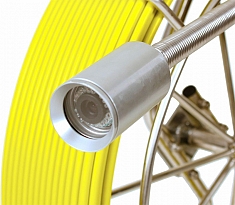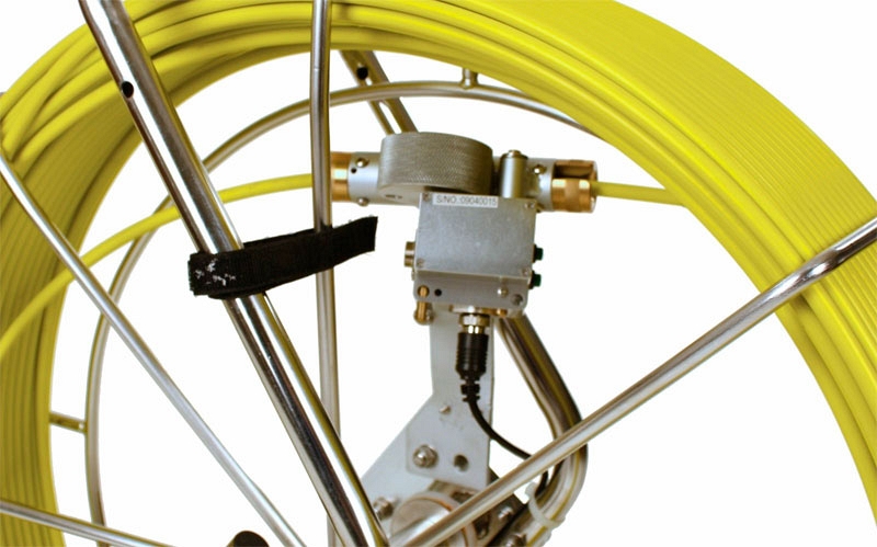 - Видеокабель Ø 9 мм (0,35") × 120 м на надежном барабане из нержавеющей стали с колесами