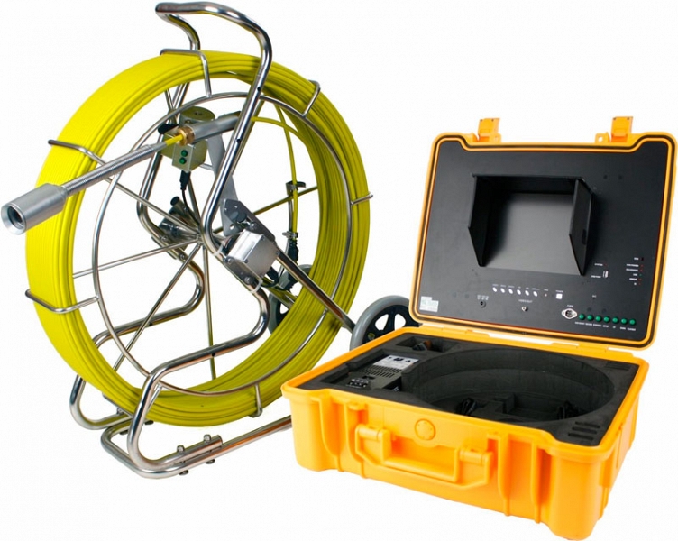 Система телеинспекции трубопроводов ForBest FB-PIC3488T (ФорБест ФБ-ПИК3488Т) – профессиональная переносная проталкиваемая телеинспекционная система с цветной камерой 40 мм (1 1/2") с автоуровнем, встроенным в камеру зонд 512 Гц для поиска локатором, цветным монитором 10", кабелем Ø 9 мм (0,35") × 120 м, встроенным счетчиком расхода кабеля, встроенным аккумулятором, встроенным микрофоном и функцией записи на USB-flash накопитель или Micro SD (TF) карту памяти для телеинспекции и видеодиагностики труб Ø 60 – 400 мм.