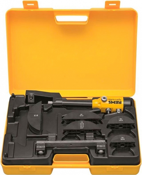 Трубогиб гидравлический ручной Rems Hydro-Swing Set 14-16-20-25/26 мм (Ремс Гидро-Свинг Сет 14-16-20-25/26 мм) – удобный масляногидравлический трубогиб для точной гибки мягких медных труб, в том числе тонкостенных Ø 10 – 22 мм, 3/8" – 7/8", толщиной стенки до 1 мм; мягких медных труб в оболочке Ø 10 – 18 мм, 3/8" – 5/8", толщиной стенки до 1 мм; труб систем запрессовки из нержавеющей никелевой стали Ø 12 – 22 мм, толщиной стенки до 1,2 мм; труб систем запрессовки из углеродистой мягкой стали с оболочкой Ø 12 – 18 мм, толщиной стенки до 1,2 мм; прецизионных мягких стальных труб Ø 10 – 22 мм, толщиной стенки до 1,5 мм; металлопластиковых труб Ø 14 – 32 мм; на угол до 90°. Идеален для работ на месте монтажа. Для мастерских и промышленности. Для стройплощадки и мастерской.