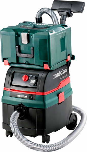 Универсальный строительный пылесос Metabo ASR 25 L SC (Метабо АСР 25 Л СЦ) с функцией встряхивания электромагнитным полем и промышленным допуском предназначен для влажной / сухой уборки, обеспечения вытяжки от электроинструментов и очистки стройплощадки, мастерской и т. д.