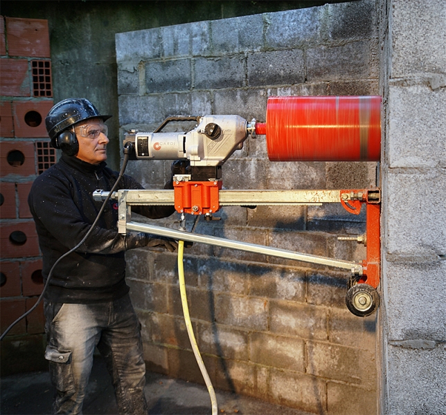Установка алмазного бурения Cardi 500 (Карди 500) с неимеющем аналогов в мире сверлильным двигателем с 6-ти скоростным редуктором! Имеет широкий диапазон различных скоростей позволяет установить наилучшую скорость для алмазного сверления отверстий! Предназначена для алмазного бурения отверстий Ø 25 – 500 мм в бетоне, высокоармированном бетоне, а также Ø 25 – 600 мм в асфальте, кирпичной кладке под углом 0° – 75° с обязательной подачей воды.