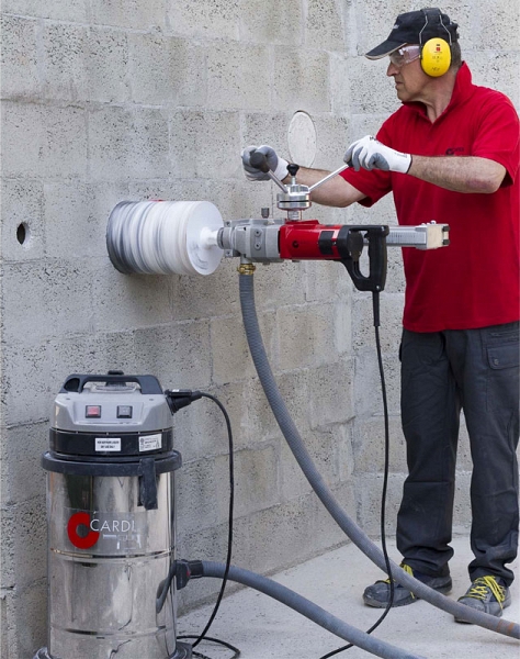 Установка алмазного бурения с микроударом Cardi HS 200 (Карди ХС 200) предназначена для сухого (без подачи воды) и мокрого (с подачей воды) сверления алмазными коронками отверстий Ø 32 – 132 мм в бетоне и железобетоне; Ø 32 – 162 мм в кирпиче (щелевом, шамотном, силикатном), асфальте, газобетоне, пенобетоне, керамзитобетоне, вулканическом туфе, песчанике, каменной кладке, известняке и многих других строительных и природных материалах как в ручном режиме, так и со стойкой при монтаже сантехники и системы отопления, защитных ограждений и перил, систем кондиционирования, вентиляции, дымоходов, электрики; прокладке слаботочных систем; отборе кернов и многом другом. Идеально подходит для использования с алмазными коронками, требующими сверление с микроударом!
